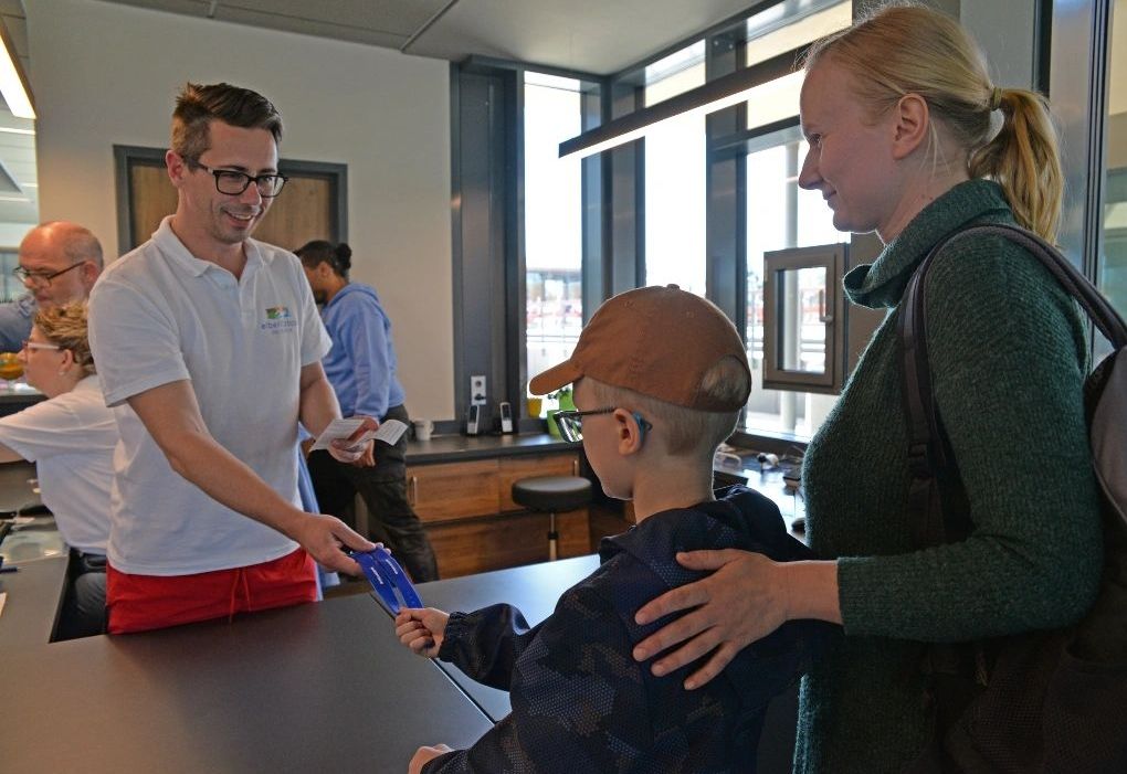 Gestern war der achtjährige Noah Homann der erste Gast in unserer neuen Schwimmhalle. Gemeinsam mit Mutter Katrin zog er seine Bahnen.